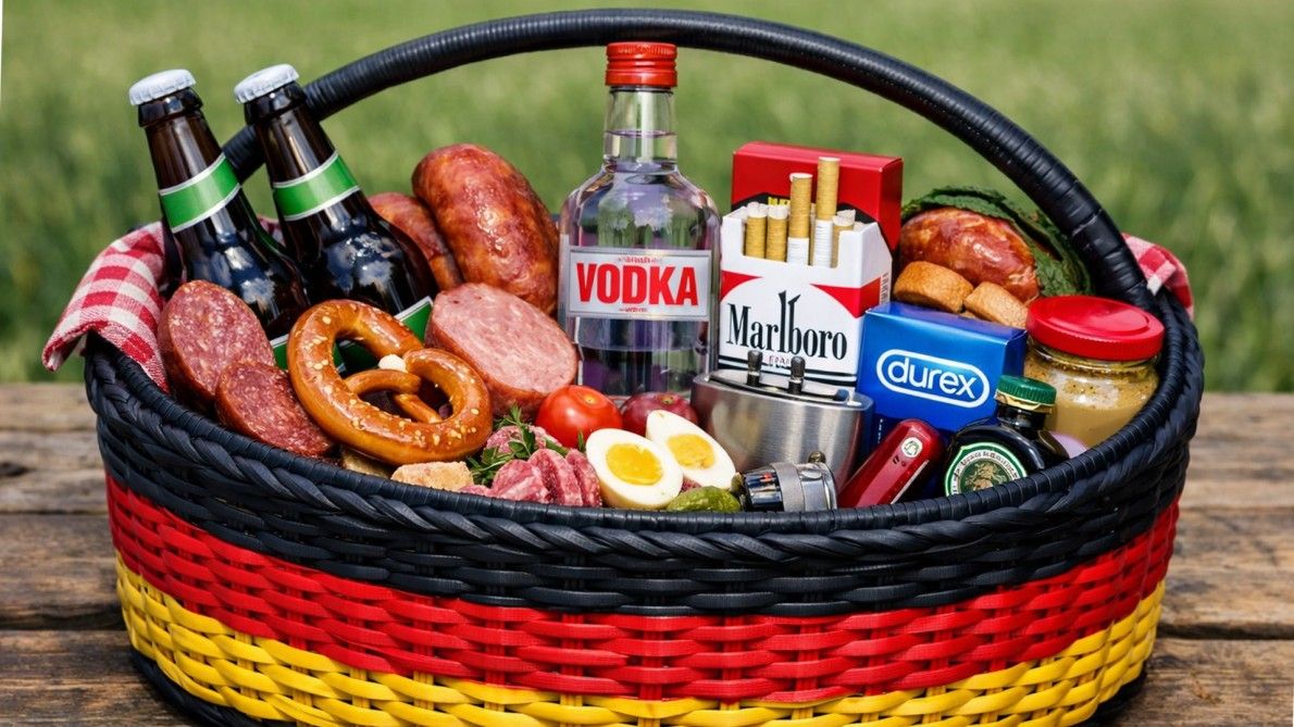 Vielleicht wird man sich seinen Deutschlandkorb“ auch persönlich konfigurieren können, wie es Anbieter von Geschenkkörben im Netz vormachen. Als Mann-Frau-Transsexueller würde man wahrscheinlich die Kodome ab und Lippenstift dazu wählen. Echte Männer dürfen sich eine Flasche Barbecuesoße und einen Einweggrill in den Deutschlandkorb legen, Zuwanderer aus Nahost „hin und wieder“ halal geschlachtete Fleischwaren, Sympathisanten der Schwefelpartei Thüringer Bratwürste. So man sich für Bioware entscheidet, sind Fleisch und Fisch tabu, weil zu teuer. Anstelle eines geflochtenen Korb, wie sonst bei Fresskörben üblich, gibt’s eine kostengünstige und ökologisch vorteilhafte Pappschachtel, aber eher nicht in schwarz-rot-gold, sonst würde der betreffende Anbieter eine Boykottaktion der Antifa oder einen Polizeieinsatz riskieren.